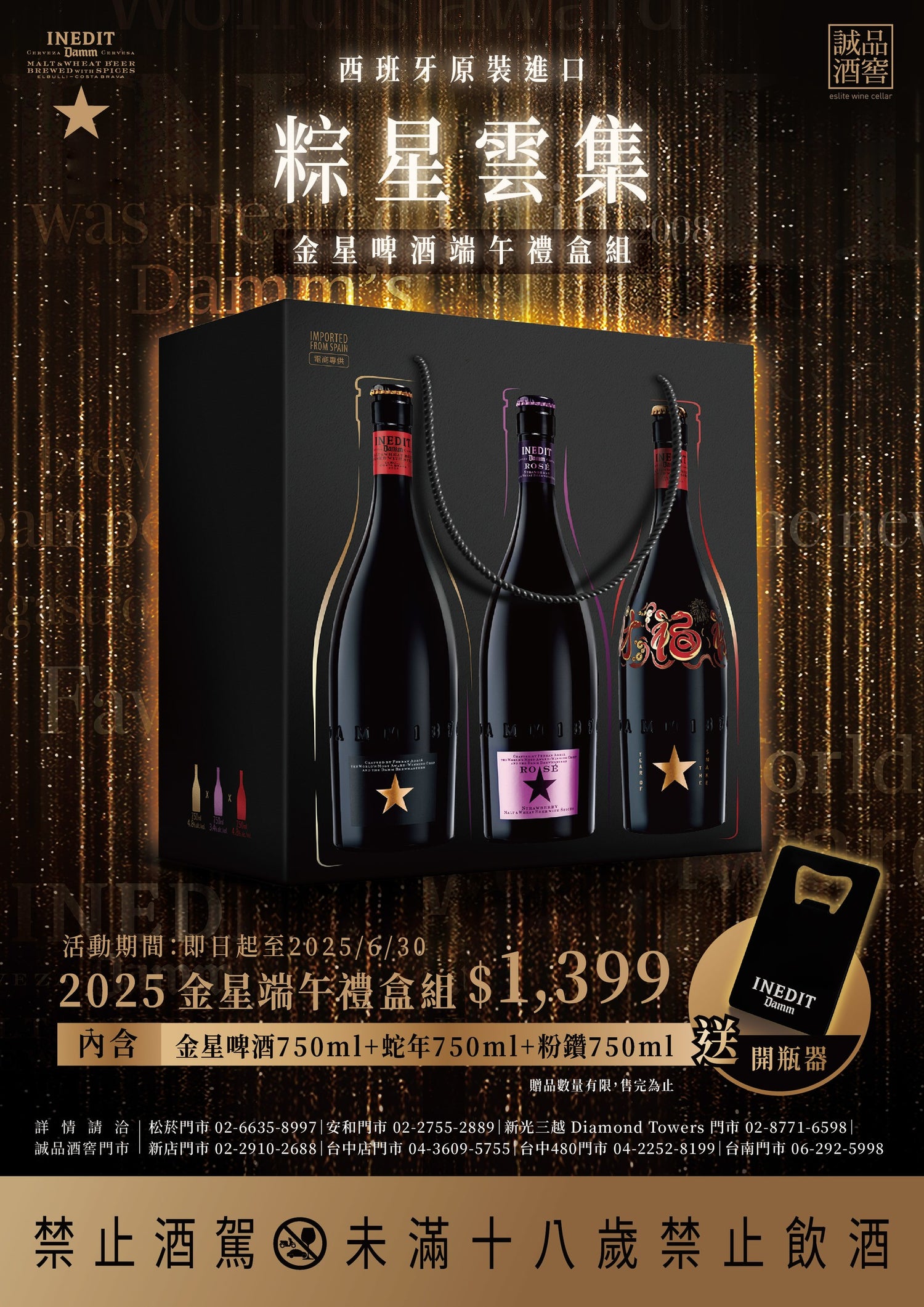 迎接端午節,誠品酒窖獻上由 INEDIT Damm 精釀打造的「粽星雲集」啤酒禮盒!將經典金星啤酒與兩款限定設計瓶身一次收藏,獻給識貨的你。
